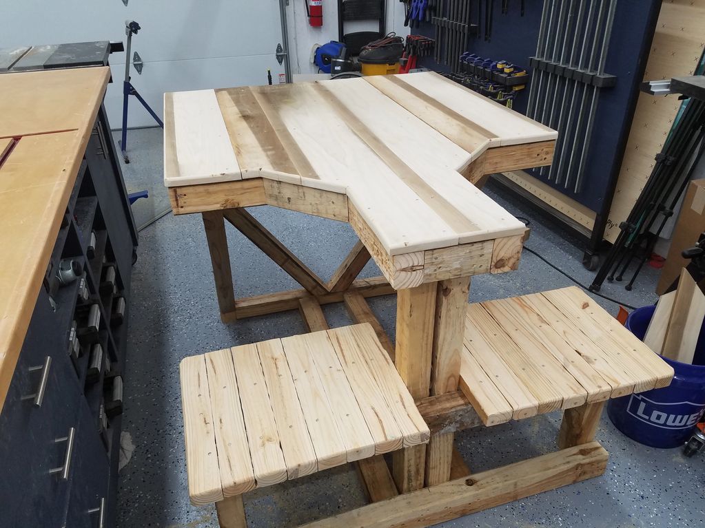 I will have to admit my nephew did the heavy lifting on this. He wanted a dining nook table and we made if from 2"x6" boards. He wanted it "Beefy" and I think we accomplished that.