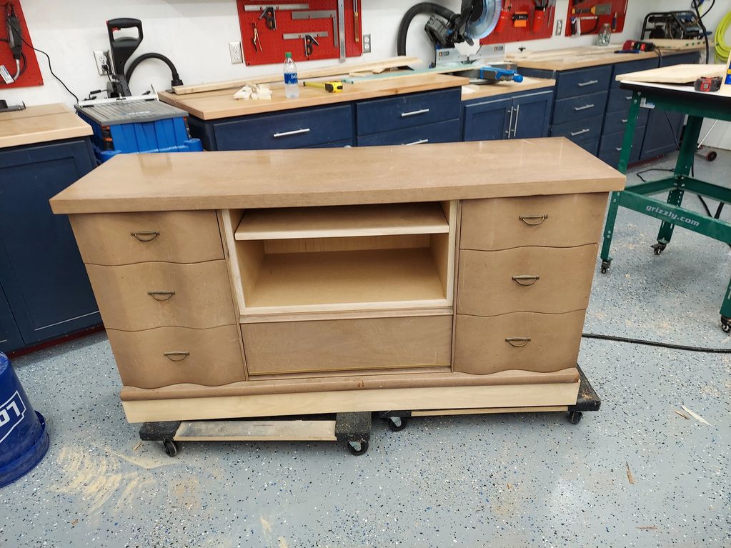 My Son brought this "project" to me. It was an old dresser that they had bought at a thrift store. He wanted it converted into a television stand with storage for cable boxes and electric components. When we got into the project we found that most of the dresser had been damaged by rot. We had to rebuild it from the ground up.